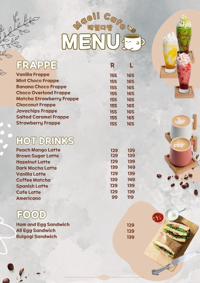 Maeil Cafe, 매일다방 Menu